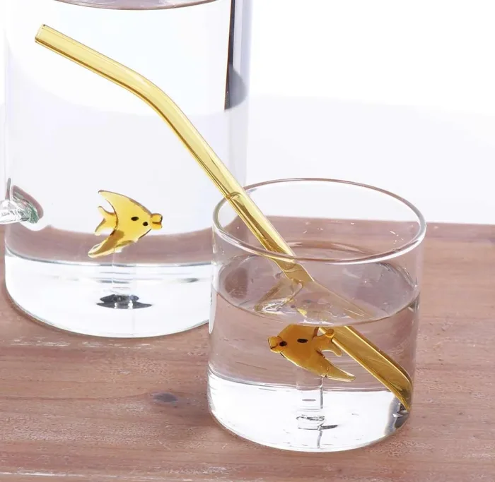 Regalo Italiano Set 6 Cannucce Colorate in Vetro 20 Cm