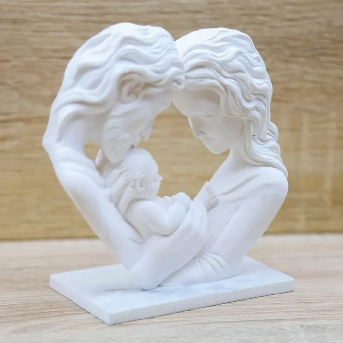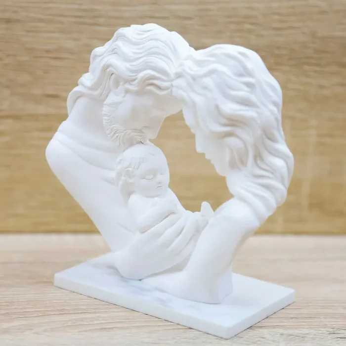 Statuina di una coppia con bimbo e base marmo, firmato Giovinarte.