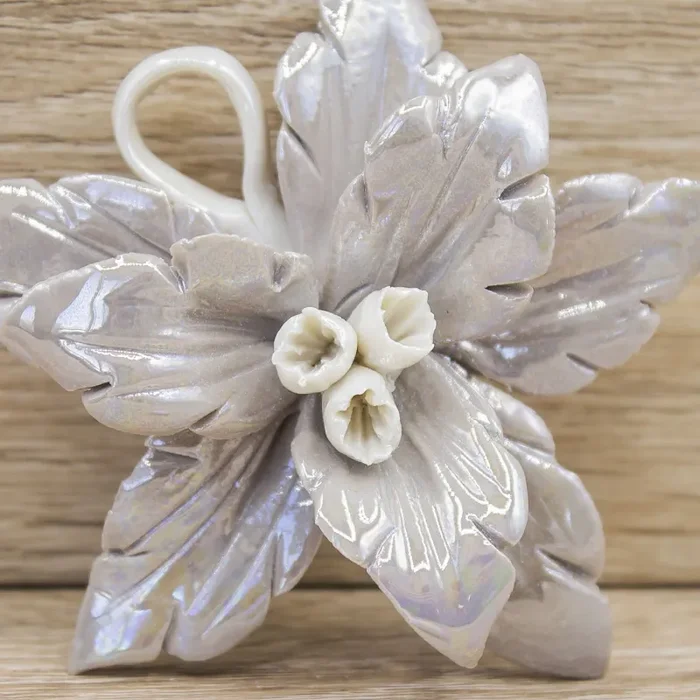 Stella di Natale Tortora, in porcellana di capodimonte dalla rifinitura lucida e madreperlata, firmato Bella Napoli.