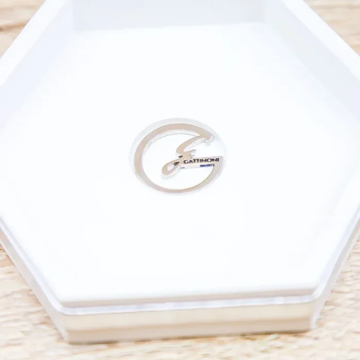 Svuotatasche con una linea color argento, firmato Gattinoni.