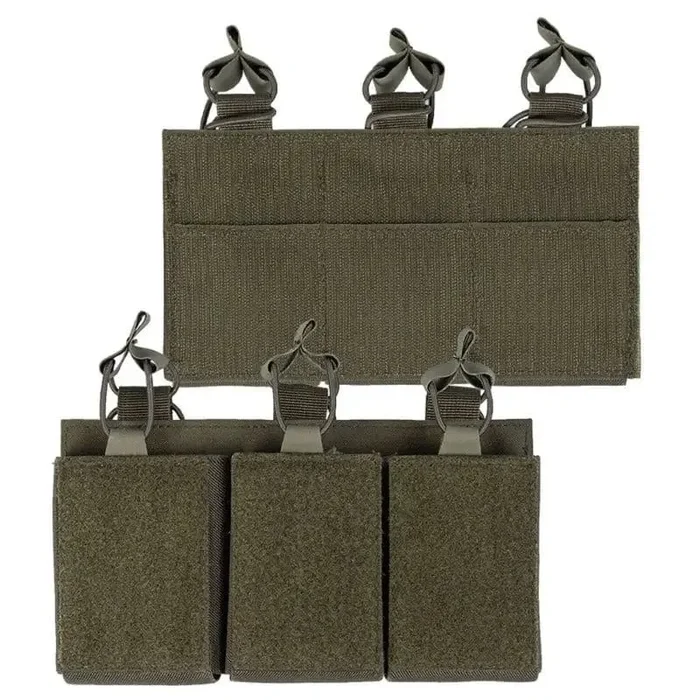 Tasca Porta Caricatore Tripo Inserto, Inner Pouch Miltec. Porta caricatori tripla per M4, M16, AR15. I caricatori sono fissati da una fascia elastica regolabile con dispositivo pull-off. Il forte retro in velcro offre la stabilità necessaria. La parte anteriore con velcro è adatta per attaccare le toppe. Il porta caricatore può essere abbinato a vari gilet con attacco a velcro.