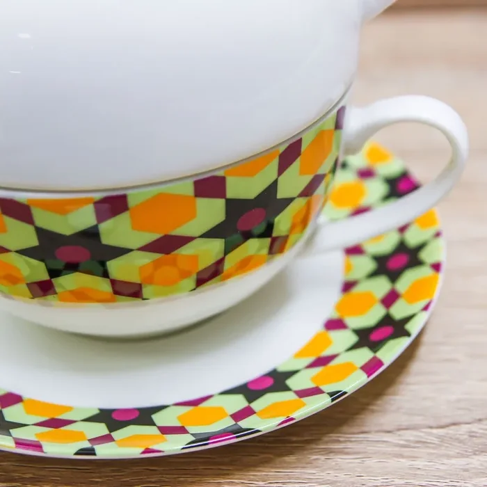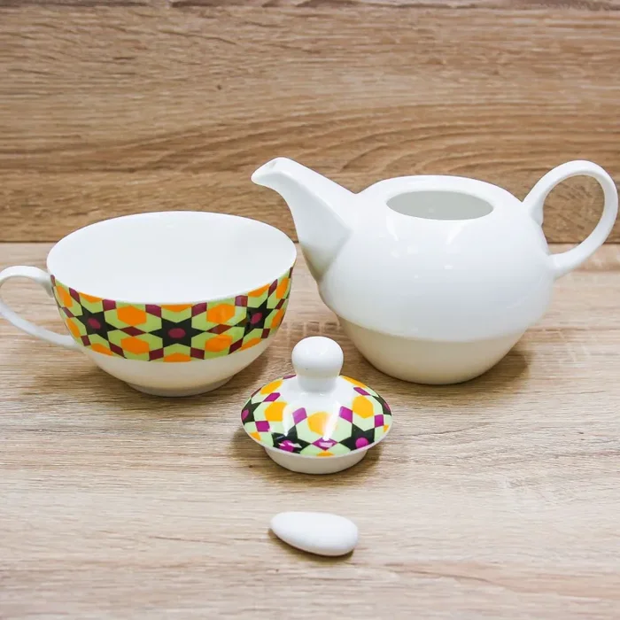 Bomboniera Utile, Teiera “Tie Decor”con piattino in porcellana, firmato Madrhélen.