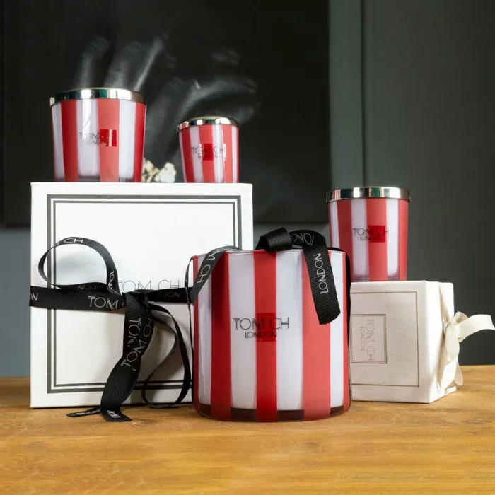 Da sempre Tom Ch, si caratterizza per la sua linea di Candele dalla profumazione intensa e duratura. Contenitori in vetro dal design elaborato e moderno, arricchiti dal tocco metallico del coperchio in oro.