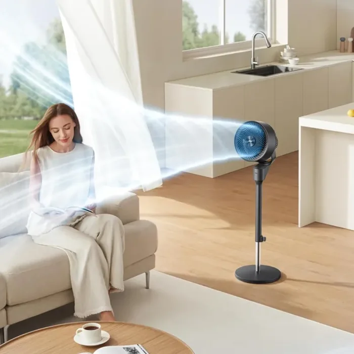 È la prima volta che trovo un ventilatore che riesce davvero a rinfrescare una stanza grande come la mia. L’oscillazione in tutte le direzioni è un vantaggio enorme, sento l’aria ovunque. Anche il telecomando e la possibilità di usare l’app rendono tutto molto più pratico. Poter regolare l’altezza e inclinare la testa è utile se siamo in più persone in stanze diverse.