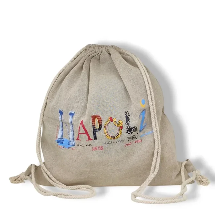 Scopri lo Zaino in cotone con cordoncini ispirato a Napoli e all’inconfondibile stile artistico di Pino Cipolla. Un accessorio unico, realizzato interamente in Italia, che unisce qualità, arte e tradizione.